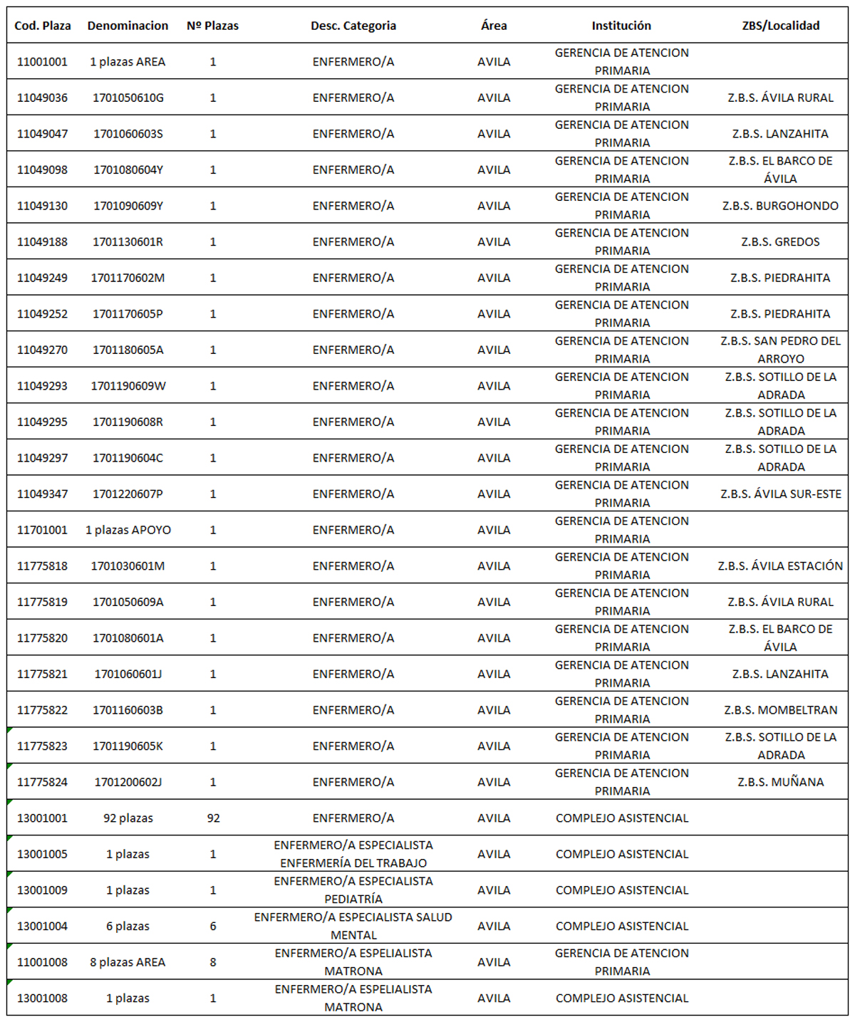 - Si la plaza es distinta localidad, Zona Básica de Salud y Área de Salud.