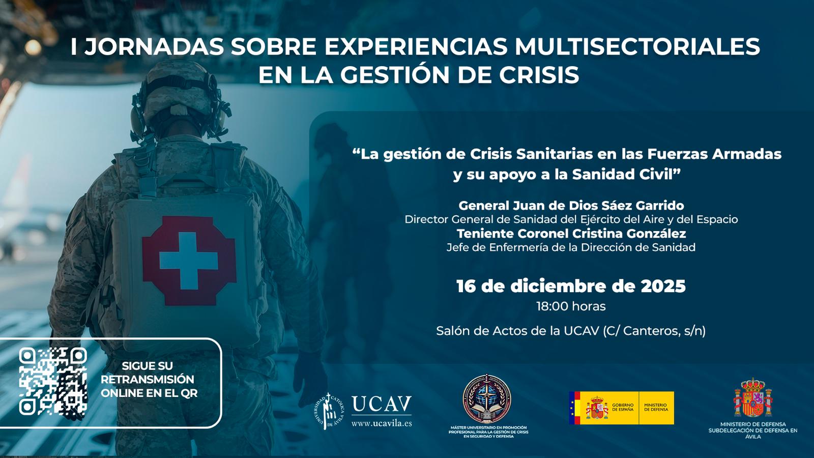 La subdelegación de Defensa de Ávila, con motivo de las I Jornadas sobre experiencias multisectoriales en la gestión de crisis, os invita a la conferencia “LA GESTIÓN DE CRISIS SANITARIAS EN LAS FUERZAS ARMADAS Y SU APOYO A LA SANIDAD CIVIL” que será impartida por dos expertos en esta materia, el General médico D. Juan de Dios Sáez Garrido, Director de Sanidad del Ejército del Aire y del Espacio, y la Teniente Coronel enfermera Dña. Cristina Gonzalez Garcia, Jefa de Enfermería del Ejército del Aire y del Espacio.
